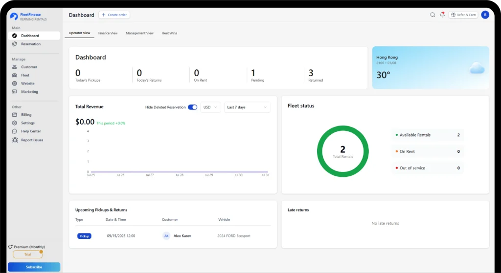 Fleet Finesse gives you real-time control over reservations, payments, and rental asset performance – all without hiring extra staff or juggling multiple systems.
